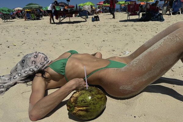 39-летняя Ирина Шейк позировала в крошечном зеленом бикини, положив на лицо платок. В кадре она пила кокосовую воду и загорала на песке. Также она показала архивные кадры с карнавала в Рио-де-Жанейро.