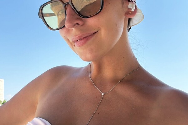 Лиза Моряк позировала в розовом купальнике-бандо, шелковом платке и солнцезащитных очках. Актриса также отказалась от макияжа и укладки.