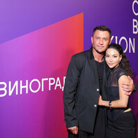 Зепюр Брутян и Павел Прилучный посетили премьеру лирической комедии «Виноград», которая прошла 27 августа в летнем кинотеатре Summer Cinema by KION в Москве. Для светского мероприятия актриса выбрала черный полупрозрачный топ, макси-юбку в тон, серебристые серьги и массивный браслет. Она уложила волосы и сделала макияж с угольно-черными стрелками. Павел Прилучный, исполнивший одну из главных ролей в сериале, появился на публике в черном костюме и футболке.