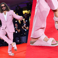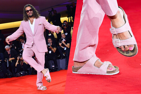 Джейсон Момоа появился на премьере фильма «В руке Данте», которая прошла 3 сентября в рамках Венецианского кинофестиваля. Актер выбрал для закрытого мероприятия белую рубашку, розовый брючный костюм, сандалии Birkenstock и черные солнцезащитные очки. Однако журналисты обратили внимание на педикюр артиста — он покрасил ногти в розовый цвет в тон образу.