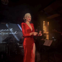 38-летняя Настасья Самбурская выступила в красном бархатном макси-платье с разрезом до бедра и глубоким декольте. Актриса также надела серьги с зелеными камнями, колье и очки в черной оправе. Образ певицы дополнил парик со светлыми волосами. Знаменитости сделали макияж с угольно-черными стрелками и алой помадой.