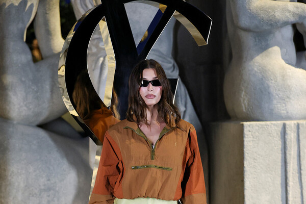 Хейли Бибер стала гостьей показа бренда Saint Laurent, который пошел в рамках Недели моды в Париже. Манекенщица пришла на шоу в желтых ультракоротких шортах с кружевом и коричневой куртке. Модель добавила к образу солнцезащитные очки, черные колготки и босоножки на каблуках. Звезда подиумов позировала с уложенными волосами и макияжем.