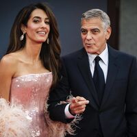 64-летний Джордж Клуни в классическом костюме и рубашке вышел на публику с 47-летней женой Амаль в розовом платье Tamara Ralph со стразами и перьями. Волосы Амаль Клуни уложили мягкими локонами и сделали макияж с угольно-черными стрелками и розовой помадой.