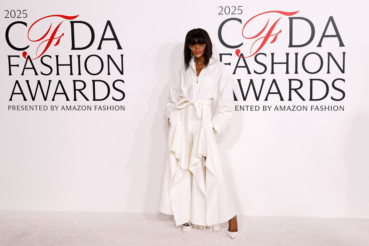 55-летняя Наоми Кэмпбелл появилась на церемонии вручения премии CFDA Fashion Awards, которая прошла 3 ноября. Супермодель продемонстрировала на мероприятии новую рваную стрижку. Манекенщица позировала перед фотографами с макияжем в естественном стиле. Звезда подиумов предпочла белый комбинезон с поясом, туфли на каблуках в тон и солнцезащитные очки.