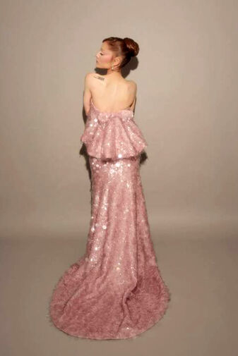 Ариана Гранде позировала в розовом платье от бренда Balenciaga, коллекцию которого разработал креативный директор Пьерпаоло Пиччоли.