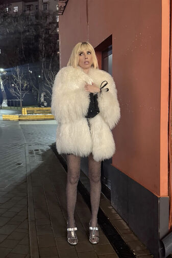 56-летняя экс-жена Бондарчука в парике снялась в сетчатых колготках и шубе
