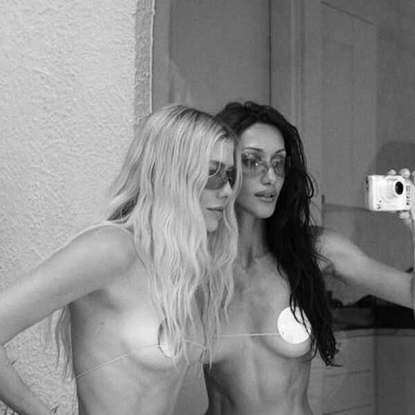 Елена Перминова снялась в серебряных стрингах и накладках для груди. Волосы модель распустила и сделала легкий макияж. В кадре она позировала вместе с подругой.