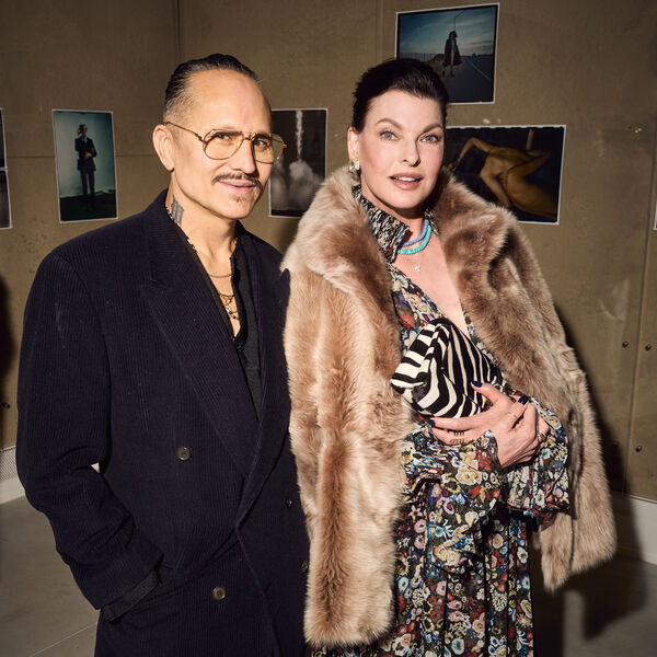 60-летняя Линда Евангелиста была одета в шубу и пестрое платье с цветочным принтом. Волосы ей уложили с объемом у корней и сделали вечерний макияж. Образ дополнили босоножки из кожи и голубые бусы.