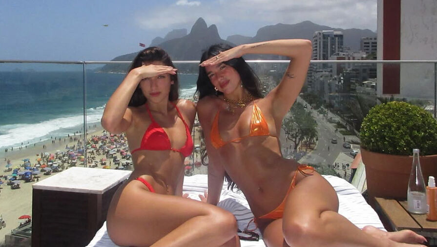 Дуа Липа позировала перед камерой в оранжевом блестящем кршечном бикини, которое дополнила золотыми серьгами и массивным ожерельем. Певица была запечатлена с распущенными волосами и без макияжа. Она загорала с сестрой Риной на террасе.