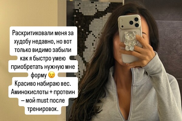 «Красиво набираю вес. Аминокислоты и протеин — мой must после тренировок», — написала Решетова.