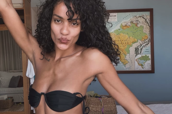 29-летняя Нара Баптиста позировала перед камерой в черном бикини на фоне спальни. Модель была запечатлена с распущенными волосами и без косметики.