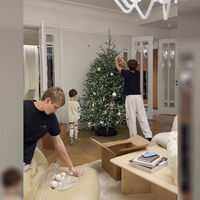 Елена Перминова с детьми нарядила елку в новой квартире. Семья поставила живую ель и украсила ее гирляндой и игрушками.