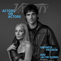 Гвинет Пэлтроу позировала в обнимку со своим коллегой Джейкобом Элорди. Актриса была запечатлена в черном атласном платье. Артистке сделали макияж и уложили волосы. Элорди предстал перед камерой в кожаной куртке, футболке и брюках.