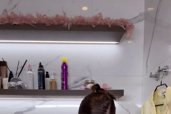 Валя Карнавал была запечатлена в розовом комплекте собственного бренда, состоящим из облегающей майки и шортов. Блогерша позировала с собранными в пучок волосами с прядью у лица и без макияжа. Знаменитость показала, как ухаживает за кожей, готовит завтрак и занимается растяжкой.