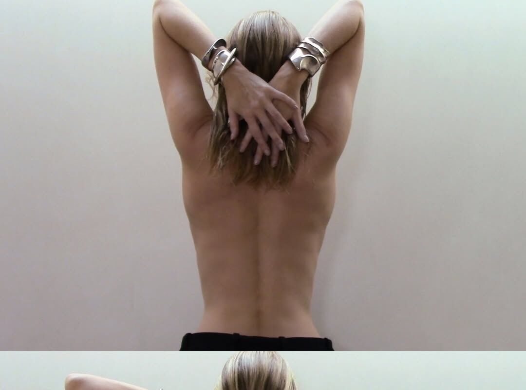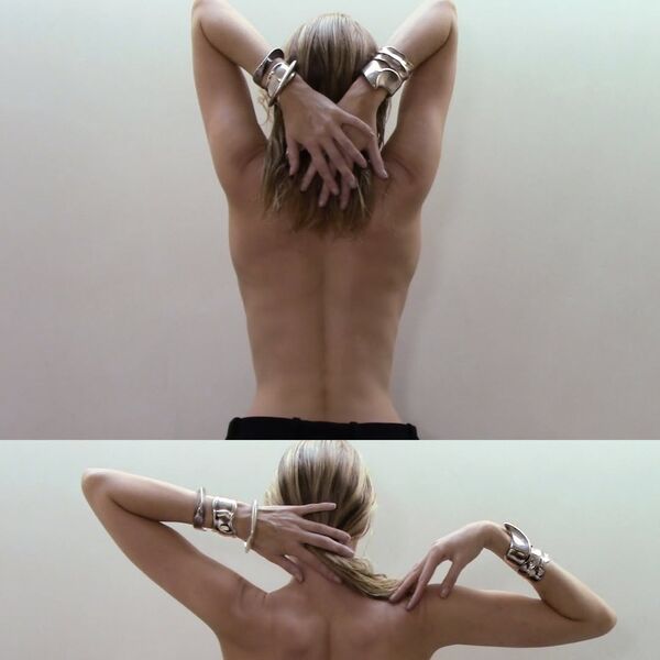 Эльза Хоск стояла спиной к камере в черных джинсах. Модель демонстрировала массивные серебристые браслеты. Манекенщица позировала с распущенными волосами.