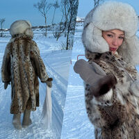 Настя Ивлеева позировала в валенках, меховой шапке, шубе и с бриллиантами на руках.