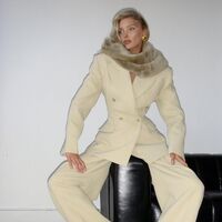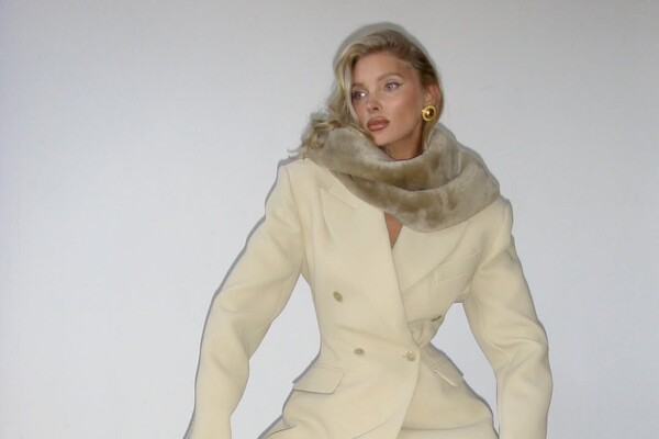 Эльза Хоск позировала в облегающем жакете на голое тело и брюках. Образ дополнила меховая накидка. Волосы модель распустила и сделала легкий макияж.