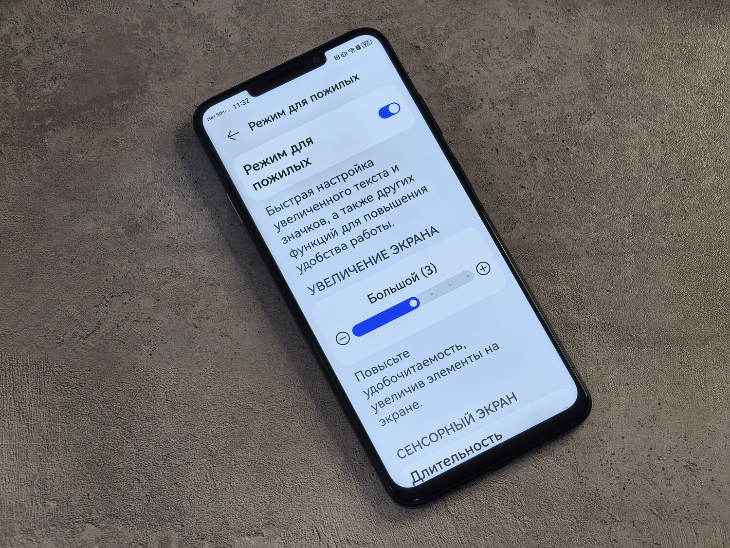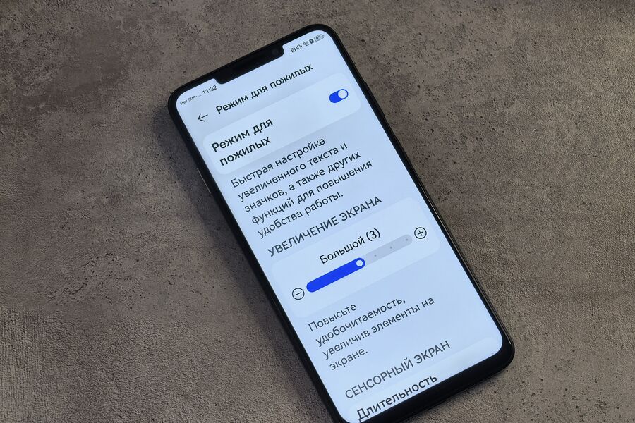 Еще одной полезной функцией является «Режим для пожилых», который позволяет увеличить масштаб интерфейса и настроить длительность нажатия на экран, чтобы избежать ошибок и случайных касаний. Такое решение повысит удобство использования представителями старшего поколения и избавит их от поиска очков при взаимодействии с устройством.