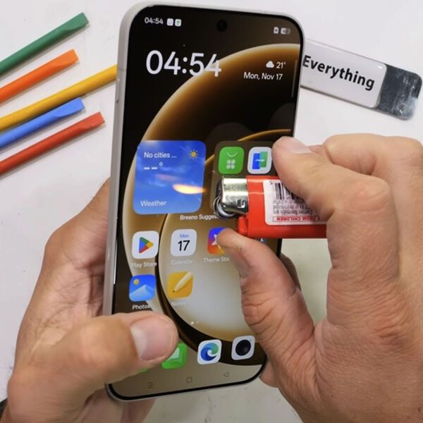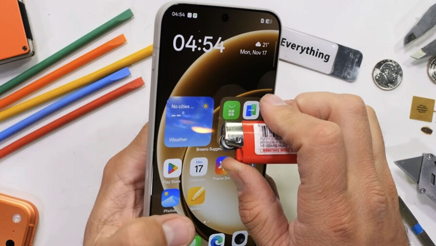 Дополнительные испытания включали воздействие открытого пламени на дисплей — экран выдержал тест без видимых дефектов. Попытка согнуть корпус также оказалась безуспешной: устройство сохранило целостность конструкции, хотя при сильном давлении отмечалась временная деформация модуля камеры.